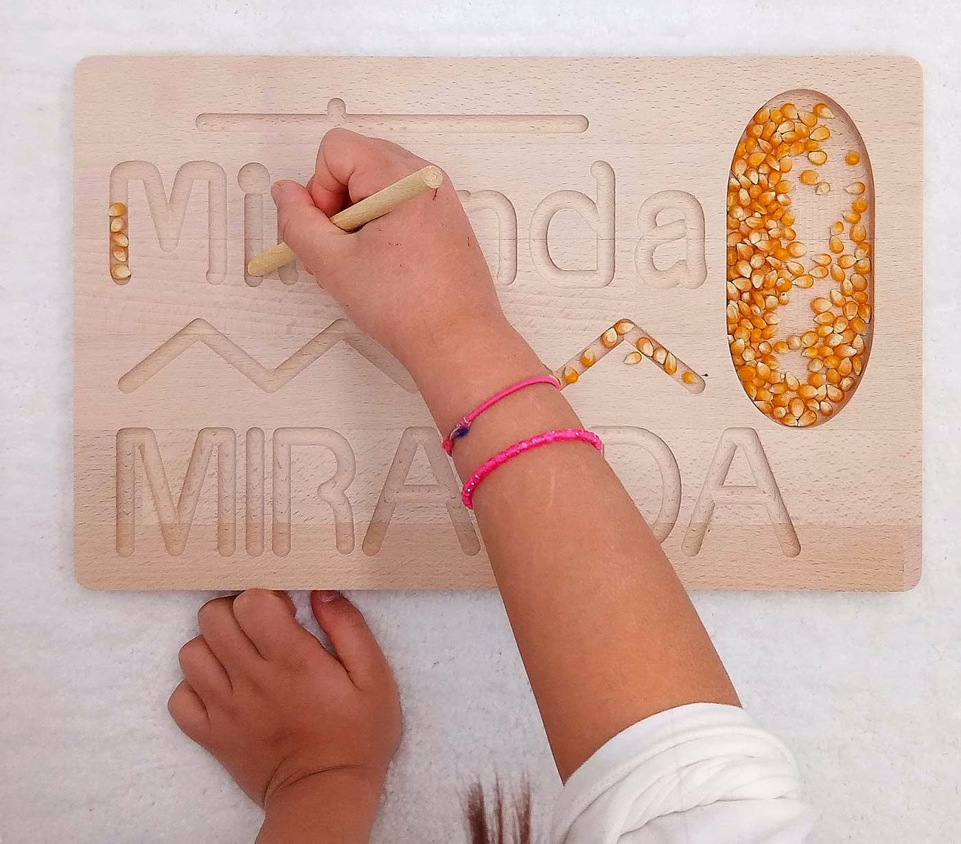 Possono divertirsi a seguire il tracciato delle lettere solcate sulla tavoletta con: