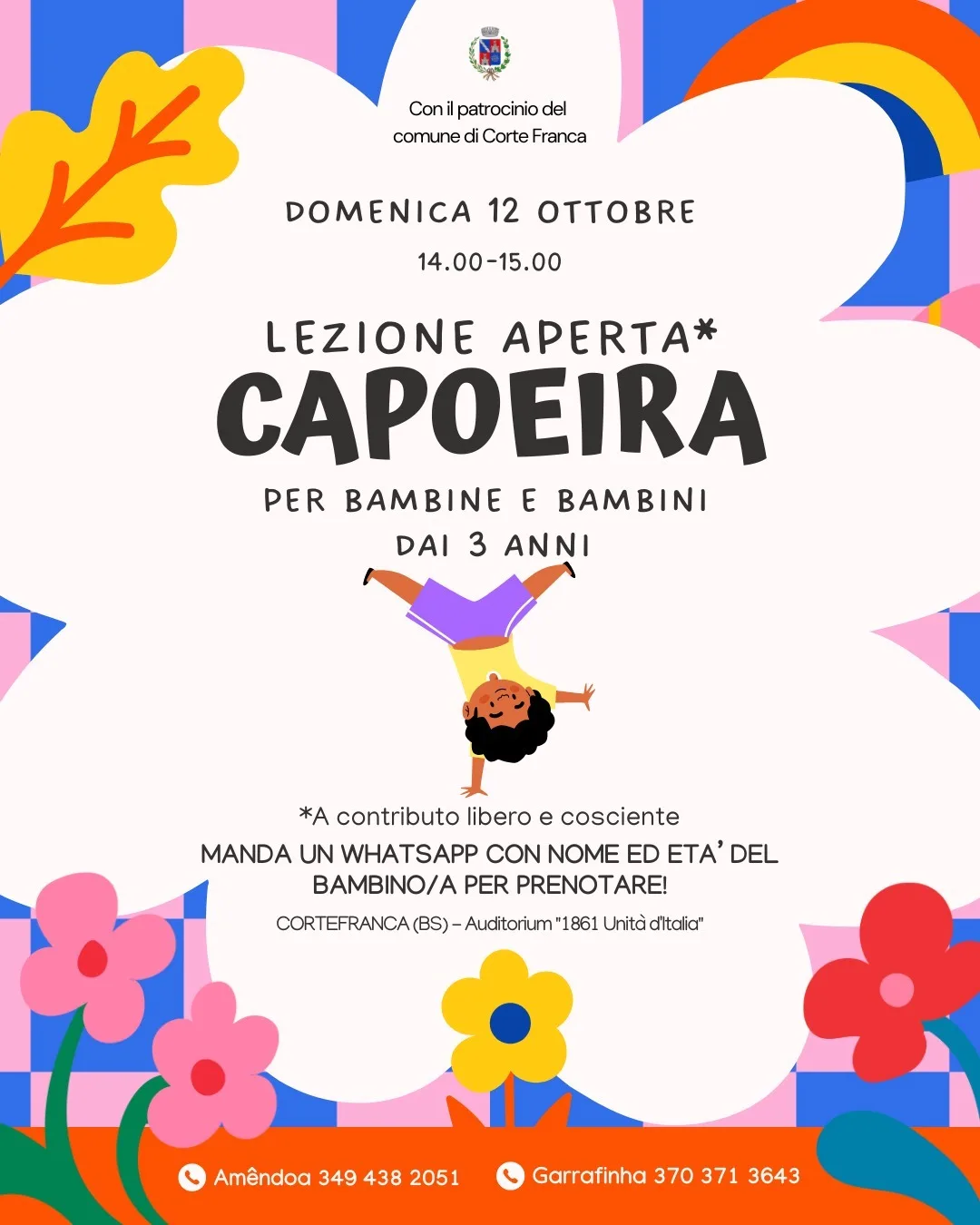 Se ti piace giocare, lottare, cantare, suonare le percussioni, imparare nuove espressioni ecco la capoeira è un’avventura che accompagna i bimbi a partire dai 3 anni ai 99! Siamo riconosciuti dal CONI come arte marziale ma è davvero riduttivo, vieni a conoscerci!